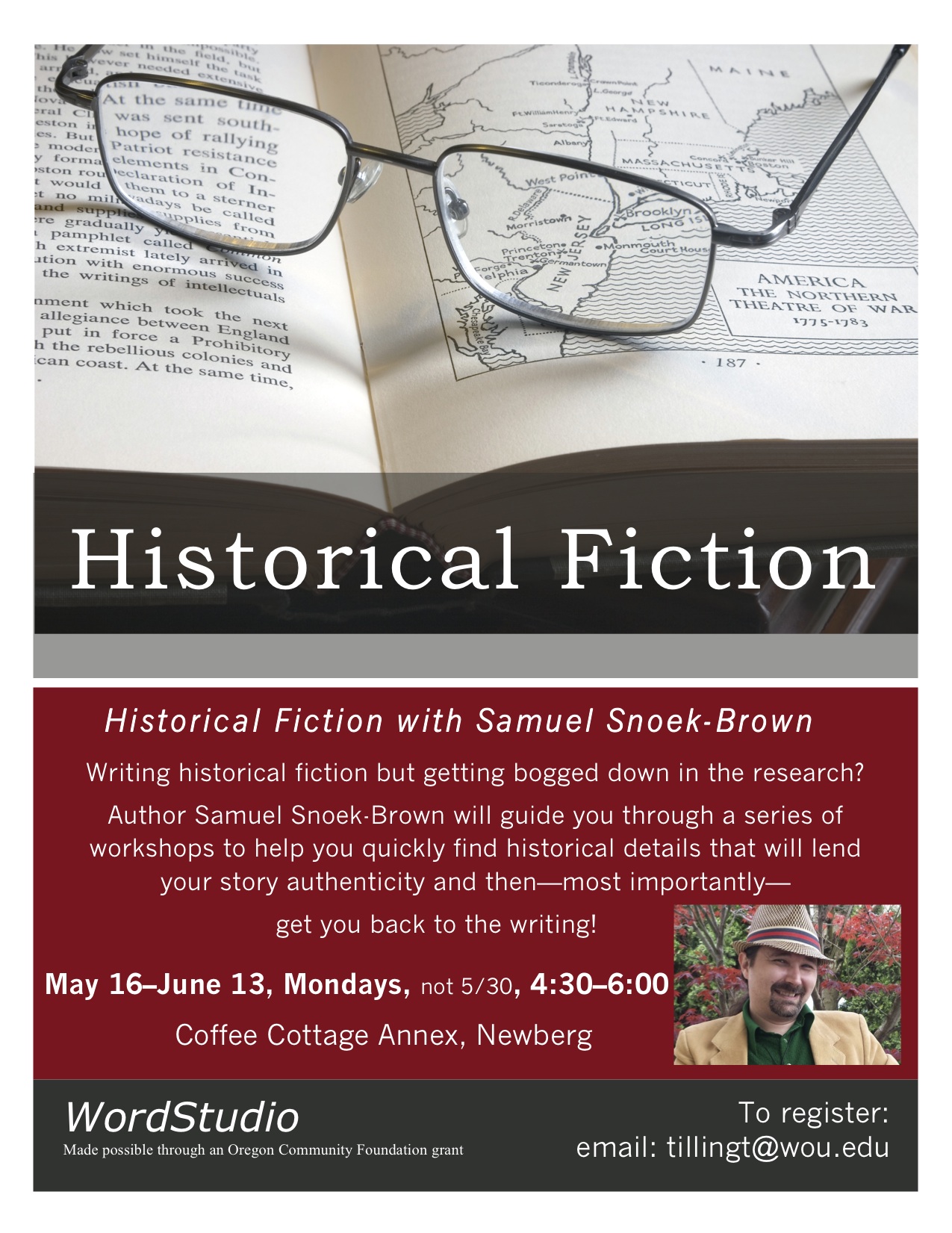 Author Samuel Snoek-Brown will guide you through a series of workshops to help you quickly find historical details that will lend your story authenticity and then—most importantly—get you back to the writing!